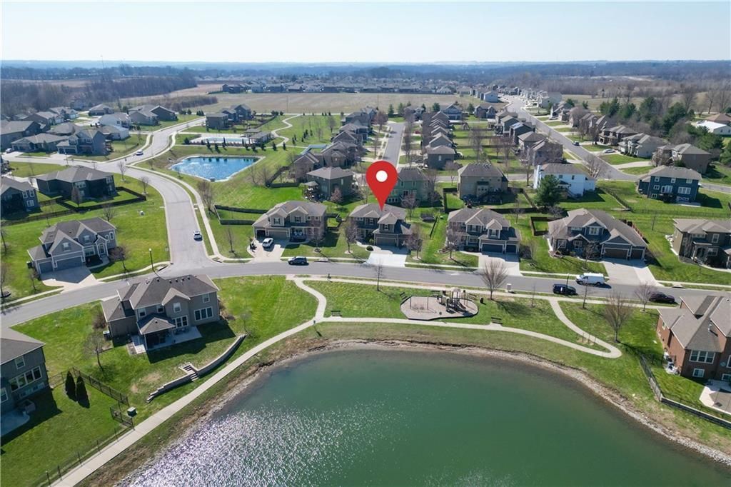 Gorgeous lake views right from your front porch?this one has been truly loved, and it shows!The open main level is filled with natural light thanks to a stunning wall of windows. Cozy up in the great room with fireplace, or gather in the beautifully appointed kitchen featuring a granite center island, gleaming hardwood floors, white cabinetry, and a spacious walk-in pantry. The formal dining room shines with elegant wainscoting?perfect for hosting. Youll also love the convenient mud bench off the garage and main-level half bath. Rich crown molding details throughout the main level enhance the homes character and refined finish.Upstairs, the spacious primary suite offers a true retreat with a beautifully tiled bathroom, complete with a whirlpool tub, walk-in shower, and an oversized walk-in closet. All additional bedrooms are generously sized with large closets and private access to full baths?ideal for comfort and privacy.The finished lower level is made for entertaining, featuring a family room and a stylish tiled wet bar with granite countertops, mini fridge, and microwave. Plus, a true 5th bedroom with walk-in closet and full bath?perfect for guests or multi-generational living.Step outside to enjoy the fenced backyard and covered patio with electric fireplace?your new favorite spot to relax year-round.Located just across the street from the lake, trails, and neighborhood playground, this home sits in an incredible community offering monthly events like holiday celebrations, movie nights, pool parties, fireworks, and more. Enjoy TWO pools, two playgrounds, scenic trails with exercise stations, stocked fishing (bass, catfish, and crappie), and peaceful lake days with kayaking, canoeing, and paddleboarding.This is more than a home?its a lifestyle.