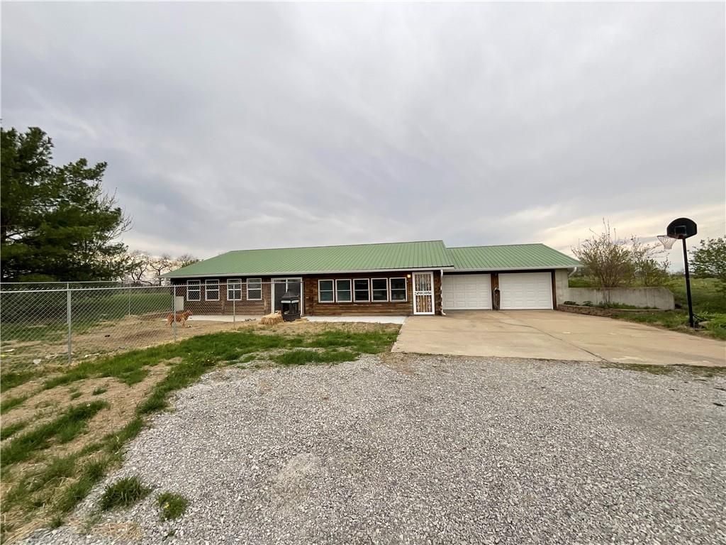 Beautiful log earth-contact home nestled on 8+ acres, offering peaceful country living with room to roam and all conveniently located on a paved road just off 116 Highway. Long driveway home sits way back off of 116 HWY. This true log home showcases timeless character with stunning log walls and rich wood ceilings throughout, no painted surfaces, just the natural warmth and beauty of wood. The open-concept design creates a spacious yet cozy feel, seamlessly connecting the living, dining, and kitchen areas for everyday living and entertaining. The kitchen features stainless steel appliances, beautiful wood cabinetry, Hard surface counter tops and a room of its own, a dedicated butlers pantry for added storage and convenience. The adjoining dining area is both inviting and generously sized, perfect for gatherings of all kinds. The bathrooms, kitchen, dining, laundry, pantry all have beautiful slate flooring/natural stone adds a touch of rustic elegance. With 3 large bedrooms and 2 full bathrooms & 2 car garage this home offers comfortable one-level living, including a laundry area and an oversized pantry. Both bathrooms have been recently remodeled with stylish solid surface walls, a walk-in tub in the primary suite and a walk-in shower in the hall bath. Enjoy quiet mornings or relaxing evenings on the enclosed front porch that spans the entire length of the home. Additional features include a newer HVAC system and water heater, Pella double front doors, solid core interior doors, and ceiling fans in all the bedrooms. For those needing extra space, the 42x40 outbuilding with an attached lean-to provides ample room for equipment, hobbies, or storage. The 8+ acres offer endless possibilities, ideal for small farming, animals, gardening, or simply enjoying the outdoors. A perfect blend of rustic charm and modern comfort so come experience it for yourself! Bring your hopes & dreams then make this gorgeous ranch your home!