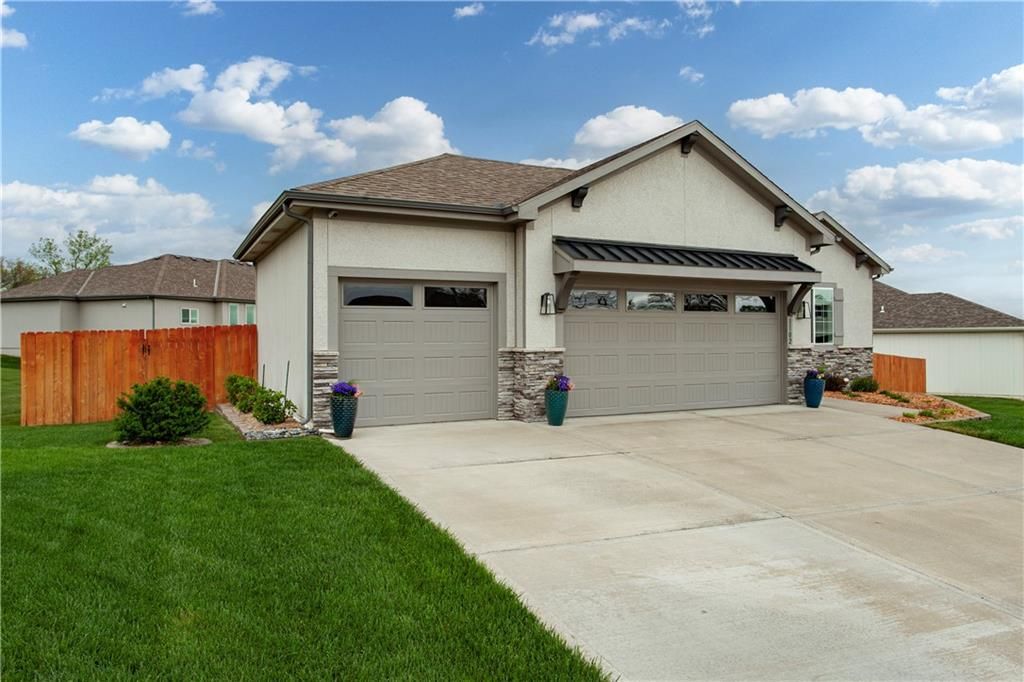 Located in the sought-after Woodbury subdivision, this beautifully maintained reverse 1.5-story home offers 4 bedrooms and 3.5 bathrooms in a thoughtfully designed layout. Only 6 years old, this home combines modern style with everyday comfort. The spacious kitchen features white painted cabinets, an oversized island perfect for gathering and entertaining. The open floor plan flows seamlessly into the main living areas, creating an inviting space for family and guests alike. Keep the lawn lush and green with help from the irrigation system. This home also offers a wood private fenced backyard.This move-in-ready home offers the perfect blend of style, function, and neighborhood amenities in one of Grain Valleys most popular communities.