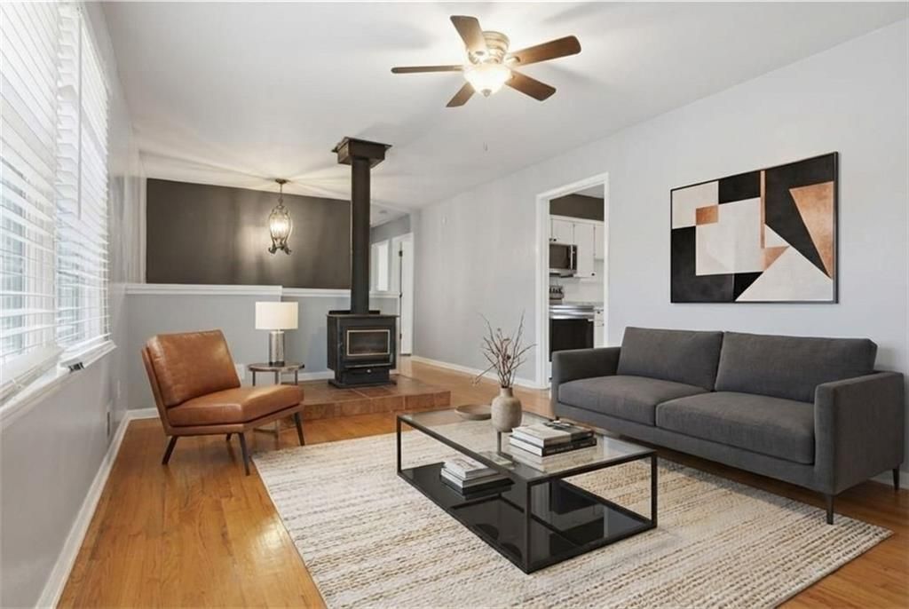 This 3-bedroom, 2-bathroom home sits on a generous lot with a covered front porch. Inside, the main level features hardwood floors, a bright living room centered around a classic wood-burning fireplace, and a functional kitchen with painted cabinets, a newer range with built-in air fryer, and a newer microwave. Fresh interior paint adds a clean, refreshed feel throughout the home.The finished basement expands your options with a flexible non-conforming 4th bedroom and a large bonus storage area / workshop. Out back, enjoy a spacious deck, a newly installed wood privacy fence, a greenhouse for gardening, and plenty of yard space for outdoor activities. A long driveway provides ample off-street parking.Property to be sold As-Is.
