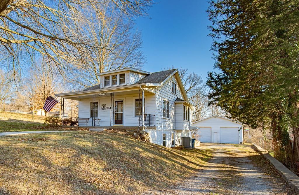 Mechanics Dream Garage with 10 foot garage doors Same owner for almost 60 years! Lovingly maintained Farmhouse style Bungalow is bright and cheerful with loads of natural light throughout! Main floor primary bedroom with en suite bathroom. Cozy living room and dining areas lead to the galley style kitchen overlooking your beautiful back yard consisting of a total of 5 combined lots with beautiful plants and trees! You will love the covered front porch overlooking the front yard. There is a wrap around deck on the back and side of the home connecting to the beautiful Sun Room. Need a third bedroom? Per the owner, the sun-room is capable of connecting to the furnace and AC for heating and cooling and could be a third bedroom if you add a closet. The second bathroom is between the dining room and sun-room and has a shower. The second floor boasts a large bedroom with an abundance of built in drawers and closets and could easily accommodate 2 beds. The basement isunfinished but is a walk out and has plenty of windows on the west side. It could easily be finished as a family room oradditional bedroom space. There is another set of washer and dryer hook ups in the basement if you prefer. The HVACwas installed in 2016 and the roof appx 10 years ago. For those you dream of additional green space, you will love thelarge lot between you and the east neighbor! Many of the items from the previous inspection report have been repaired now termite treatment of both home and garage ARE COMPLETE WITH ONE YEAR WARRANTY extendable for $95 per year, radon remediation scheduled for 4/20/26, sewer line clearing of tree roots completed on 4/13/26 with new camera scope that will be added. Other than items completed or currently scheduled, the home is selling AS IS
