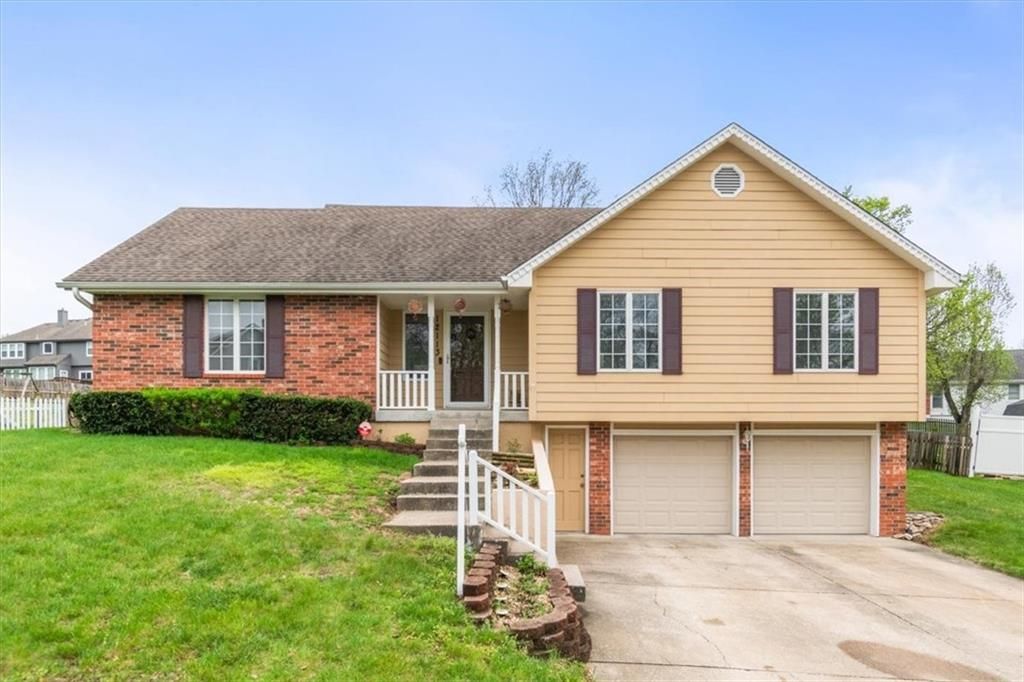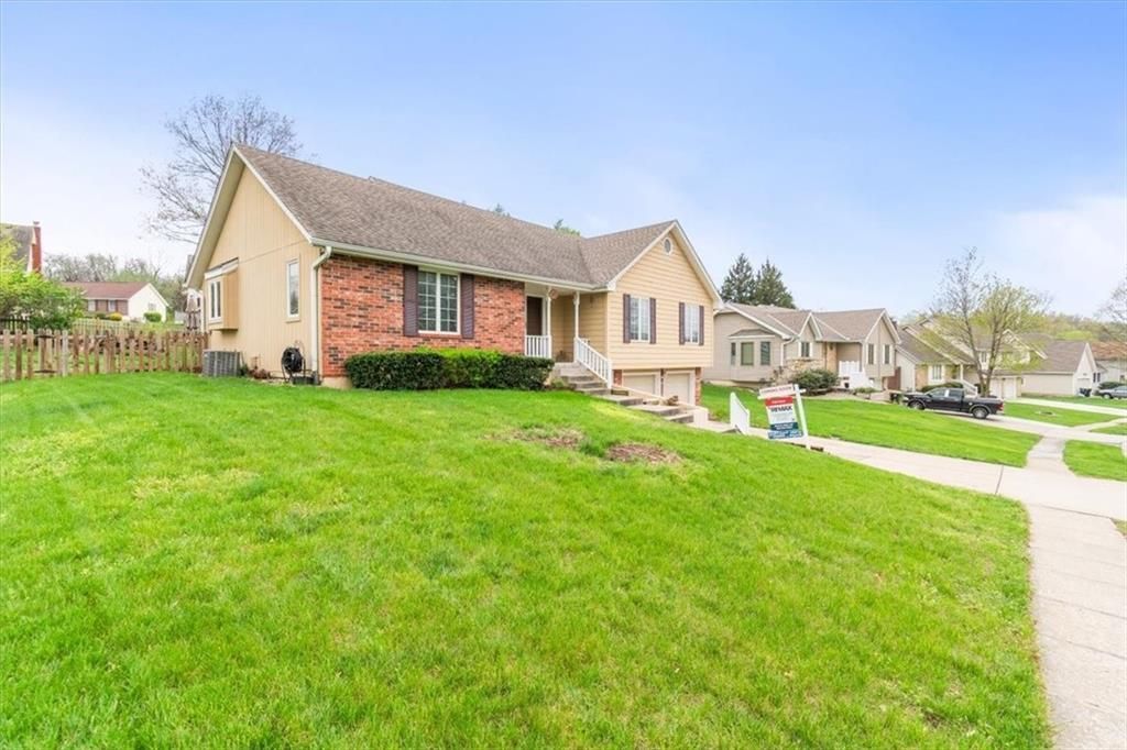 This charming raised ranch in Kansas City offers a perfect blend of classic character and functional space, making it a standout choice for modern living. The curb appeal is immediately inviting with a mix of timeless brick and siding, complemented by a tiered front walkway. Step inside to discover a bright and airy living room anchored by a stunning floor-to-ceiling brick fireplace and rich wood-style flooring that flows throughout the main level. The heart of the home is the updated eat-in kitchen, featuring sleek granite countertops, a tiled backsplash, and stainless steel appliances. A convenient pass-through window connects the kitchen to a versatile dining or breakfast nook, ideal for entertaining.The primary suite is a true retreat, boasting a beautiful tray ceiling and ample natural light. Additional bedrooms provide flexibility for a growing family or a dedicated home office. Downstairs, the finished basement expands your living options with a spacious family room/media area, and a large non-conforming additional bedroom that is perfect for guests or a private hobby space. Storage is never an issue thanks to the attached two-car garage with internal access.Outdoor enthusiasts will love the expansive, fully fenced backyard. A large stone patio offers the perfect setting for summer BBQs and morning coffee. Located in a quiet, established neighborhood with easy access to local amenities and highways, this home combines comfort with convenience. Whether you are hosting a gathering in the open-concept main floor or enjoying a quiet movie night in the lower-level rec room, this property is designed to accommodate every lifestyle. Do not miss your chance to own this home that truly has it all.