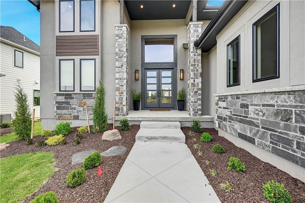 MODEL HOME NOT FOR SALE. The Layla II 1.5 Story by Walker Custom Homes is here at Heritage Ranch! The incredible contemporary front elevation with luxurious stone, stucco and custom accents you are sure to feel the lavish this home brings as soon as you arrive! As you enter into the soaring entry and winding staircase to the upper level, the Great room has ample natural light, fireplace stone to the ceiling, beams, opens up to the kitchen and dining room. Covered Composite Deck with fireplace. Large office behind the kitchen. Every bedroom/office has its own En-Suite bathroom. Butlers pantry and additional pantry. Mud Hall with boot bench with locker cabinets next to the half bath. Primary En-Suite behind the Great Room. Spa-primary bathroom with stand-alone tub in the wet-room, double vanity and premium lighting and tile, next to the walk-in closet, connecting to the main level laundry! Up the grand staircase is 2 more bedrooms both en-suite and a Loft. Basement is finished with another bedroom en-suite, wet bar, rec room, ample wine storage with glass door and media room. All in the coveted Heritage Ranch, A Lambie-Rieke Community, with Amenities Galore such as state-of-the-art pool, clubhouse, trails, pickleball. play area, half-court basketball, Putting Green & ponds and so much more coming soon! This community provides a wonderful lifestyle and right next to the 1,238 Acre Heritage Park with Dog Park, Sports Parks, Golf, Lake, Trails and so much more! Contact Onsite Agents for Estimated Completion of homes on site, and design selections. Our Welcome Center Office will be open soon. We are available 7 days a week for showings of Models & Specs. Renderings &/or images may show features and sq ft that are subject to change. Welcome Home to Heritage Ranch - one of the last NEW Home Communities in Johnson County! ESTIMATED COMPLETION APRIL 2026. LOCATED ON LOT 100.