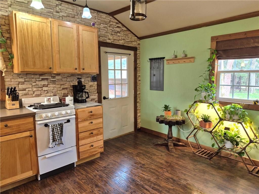 WELCOME HOME to this cozy retreat just a few short miles from the lakes! Imagine just a quick ride to fish on Pomme de Terre Lake or go north to Truman Lake! Sitting on just over 5 wooded acres, this cabin has been very well maintained, including many recent renovations for the ultimate comfort! Open floor plan allows for comfortable living and kitchen space. Hall connecting bedroom and main cabin is currently utilized as an office; or could be used for additional storage - easily versatile! Relax in the extra large bedroom with two custom built closets and beautiful wood touches to backdrop the stunning view out of the French doors. The deck is newly built in 2023 and adds the perfect space to unwind and enjoy the sounds of nature and gaze upon the stars. Freshly painted inside & out, French doors installed from the master bedroom opening to the new expansive deck, plus a new lofted storage shed with electricity for lights, charging equipment and a fully functioning workshop! An insulated well house is attached to a large outbuilding/shed for more storage, plus a 3rd shed for a great option of keeping your equipment, wood, etc. A top of the line Moore Water Softener and Purifier is staying ($10,000 value, warranty included) for the best well water in Hickory county!! There is also a concrete foundation on the acreage with water and electricity connected that can be built on for additional storage or another residence. Gravel easement road runs on north side of property from front to back, and is maintained by cemetery (rarely used). You will enjoy families of deer and so much wildlife that graze in the property just outside your window! A peaceful place to call HOME all year around!