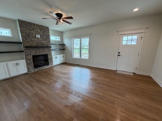 This craftsman farmhouse style 1.5 story home with dormers has so many amazing features like a front porch, Open great room with built in cabinets with floating shelves on both sides of the fireplace. Beverage station between great room and kitchen. Kitchen features custom floor to ceiling custom cabinets, hood over stove, Drawer microwave in custom island. Pantry and laundry off kitchen. Entertain off the covered deck. Primary bedroom on main level. Features double vanity, tub/shower, walk in closets and ceiling fan. Two spacious bedrooms on the upper level that are about 11x10 in size, large closets, ceiling fans, storage areas and bench seats at dormers. Features a Jack and Jill bath. The spacious unfinished walkout lower level is stubbed for bath, features a storm shelter and patio. Located on a cul de sac in a small newer neighborhood. USDA financing available!