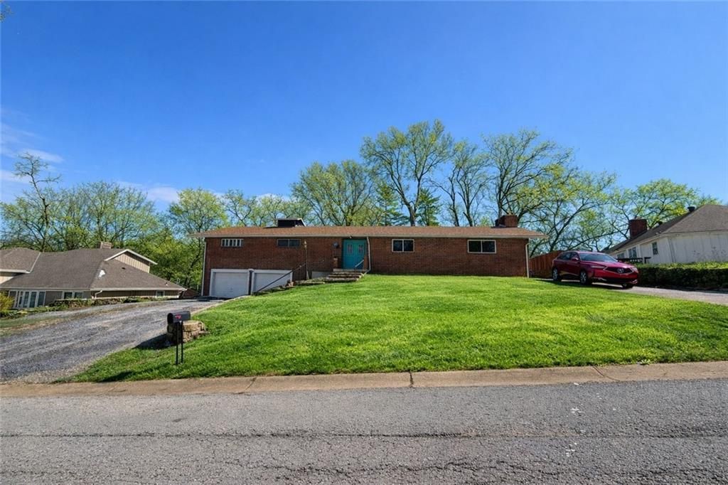 This completely brick home has over 3,000 sqft of space and a great location just minutes from Legends/Shopping, easy access to Major highways and other amenities. The big ticket items are all newer Roof 2023, HVAC 2020, Newer Vinyl Windows, low maintenance brick exterior. The inside has huge potential for you to put your stamp on. Upon entry you will find a room to the right that can be used for a private office or living room, The kitchen has great space and can use your personalization. The family room is enormous with a floor to ceiling fireplace. In addtion there is a large main level laundry room, 3 bedrooms with the primary having an on suite bath and a center hall bath for the other bedrooms. There are 3 more rooms 2 non-conforming rooms with closets and a full bath in the basement. These can be used for additional bedrooms, fitness room, office and more. Then there is the enormous 27 x 23 lower level rec room with fireplace. All of this and a large .34 acre lot this property gives you lots of potential make it your own.