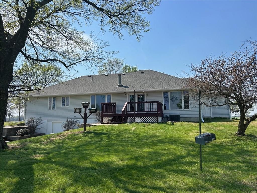 This custom built one owner home features 3 bedrooms, 2 1/2 baths, fireplace, deck, full unfinished basement, covered front porch, open living room and great views of the surrounding countryside. The home sets appx six miles south of Nevada on blacktop highway with easy access to town. Living room is highlighted by an inviting glass gas fireplace with east facing windows bringing in lots of natural light. Kitchen is open and spacious and includes a newer gas range apx 2 years old. Property includes a 36 x 48 appx Morton building with electric and gravel floor that is perfect for storing equipment.