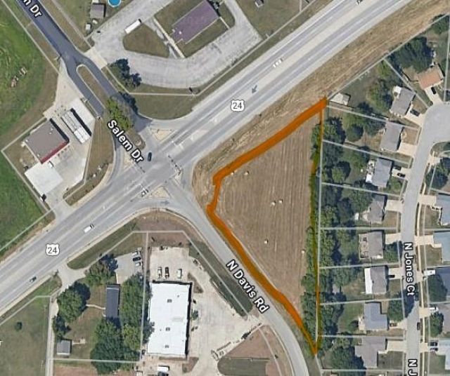 1.2 acres plus or minus. Triangle shaped corner lot located on SE corner of 24 Hwy and Davis Rd- Undeveloped there are no utilities on the property. Good visibility and zoned C-1. Call for more information