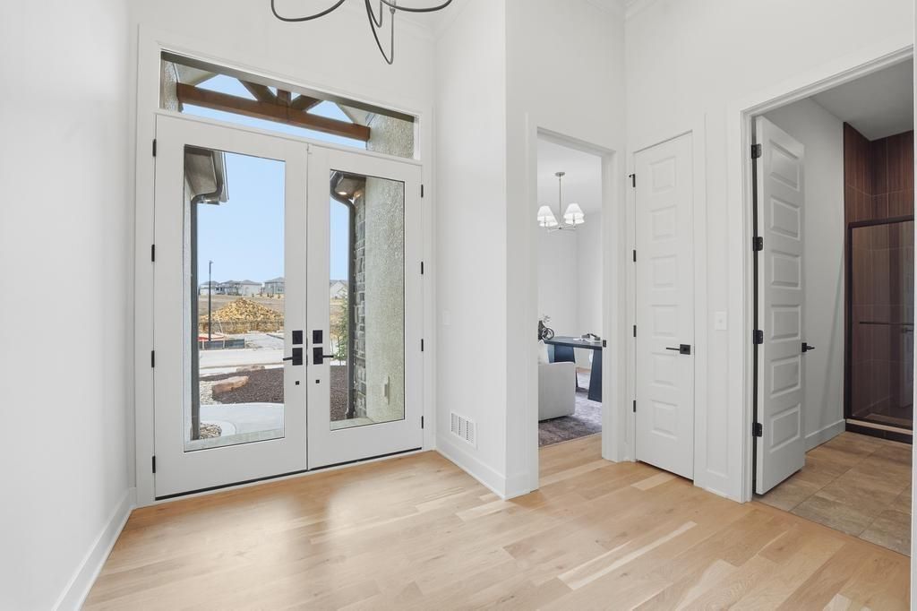 The stunning Emerson reverse 1.5 story plan by French Homes in Cedar Creeks newest community - The Estates of Canyon Oaks. Located in the award-winning Olathe School District, this reverse 1.5 story home has 4 beds, 3.5 baths, 3 car garage and sits on a walkout lot on a cul-de-sac. Step inside the double wide doors into the entry which leads you to the spacious family room with wood floors and fireplace with built-in cabinet surrounds. The gourmet kitchen features an island, custom cabinets with hood, cooktop, built in oven/micro and a generous sized prep pantry with storage, sink and beverage cooler. The eat-in dining space has a built-out space perfect for a hutch and also connects to the covered deck - perfect for morning coffee. The private main level primary suite offers a spa-like bathroom that includes double vanities, free-standing tub, shower with bench and a huge walk-in closet that conveniently connects to your laundry room. Main level also has a second bedroom, full bath and a mudroom with bench off the garage. The walkout lower level includes a large rec room with second fireplace, wet bar with island and two additional bedrooms, 3rd full bath and a half bath perfect for guests. Plenty of unfinished storage space left too. Enjoy Cedar Creeks amazing amenity package that includes 3 neighborhood pools, community clubhouse with exercise room and indoor basketball court, lit pickleball and tennis courts, access to 65 acre lake, monthly neighborhood events, walking trails and more.