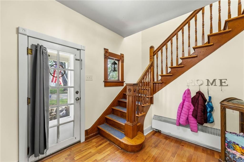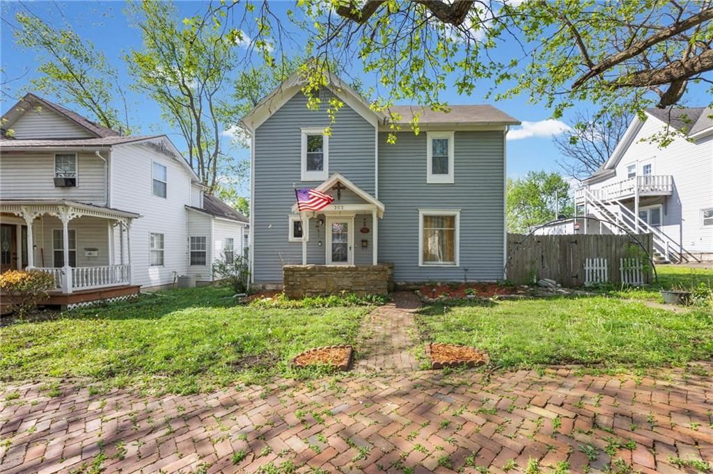 This stunning 4 bedroom, 2 bathroom home perfectly marries historic charm with modern sustainability, offering a rare opportunity to own a piece of architectural beauty. From the moment you step inside, you are greeted by the warmth of original woodwork, gleaming hardwood floors, and a magnificent original staircase that serves as a focal point of the home. The main level features a sprawling living room centered around a cozy gas fireplace, flowing seamlessly into a formal dining room designed for memorable gatherings. The kitchen is a chefs delight, boasting freshly painted cabinetry complemented by elegant new granite countertops. For year-round enjoyment, the sundrenched four-seasons room provides the ideal backdrop for entertaining guests or finding a quiet moment of repose. Practicality meets innovation with the inclusion of a newer HVAC heat pump and solar panels, ensuring exceptional energy efficiency and lower utility costs, including newer windows. The floor plan is thoughtfully designed for flexibility, offering a convenient main-floor bedroom while the upper level houses three additional spacious bedrooms and a full bathroom. Outside, the property continues to impress with a 2 car detached garage and a privacy fenced yard that offers a secluded oasis for relaxation. Situated in a prime location, this home is just a short stroll from the vibrant and historical Paola Town Square, where you can enjoy local shops, dining, and a variety of community events held throughout the year. This property isnt just a house; its a lifestyle upgrade nestled in the heart of a charming community.