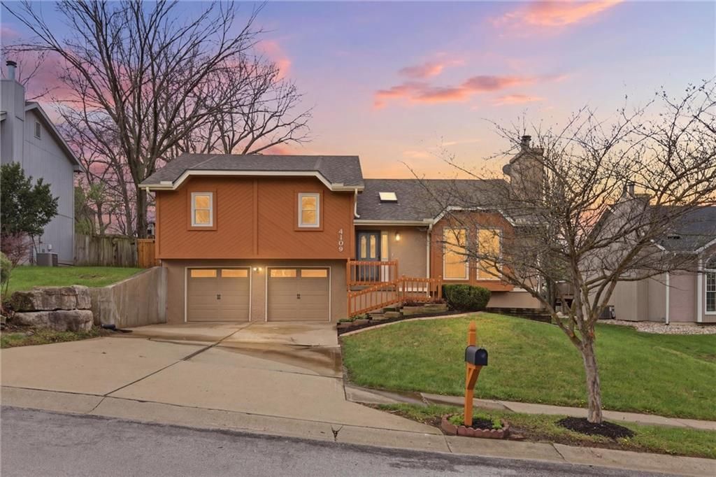 Welcome to 4109 NW 65th Street, nestled in the highly sought-after Seven Hills neighborhood within the Park Hill School District. This beautifully maintained split-level home offers 4 bedrooms, 3 full bathrooms, and nearly 2,000 square feet of finished living space ? move-in ready from top to bottom.Curb appeal sets the tone from the moment you arrive, with warm wood-tone siding, a 2-car garage, and a welcoming front entry framed by a classic wood staircase. Step inside to an open dining and kitchen area featuring brand new flooring throughout, white cabinetry with glass-front uppers, tile backsplash, generous counter space, and a gas range ? all flowing seamlessly to the brand new deck through a sliding glass door, perfect for indoor-outdoor entertaining.The primary suite impresses with soaring vaulted ceilings, a skylight, ceiling fan, walk-in closet, and a private en-suite bath. Additional bedrooms are spacious and bright, each with fresh new flooring and served by two full bathrooms with clean, updated finishes.A standout feature on the lower level is the charming barn door entry leading into the recreation room ? an ideal flex space for a home office, playroom, or guest suite. The sub-basement provides ample unfinished storage housing all recently updated mechanicals.Out back, enjoy a brand new fence enclosing a generous yard paired with a freshly built deck ? perfect for summer entertaining. Major systems updated include roof (2020), AC and HVAC (2022), and water heater (2023).Just 12?15 minutes from downtown Kansas City with easy access to I-29, this home delivers suburban comfort without sacrificing convenience. Dont miss it ? homes in Seven Hills move fast!