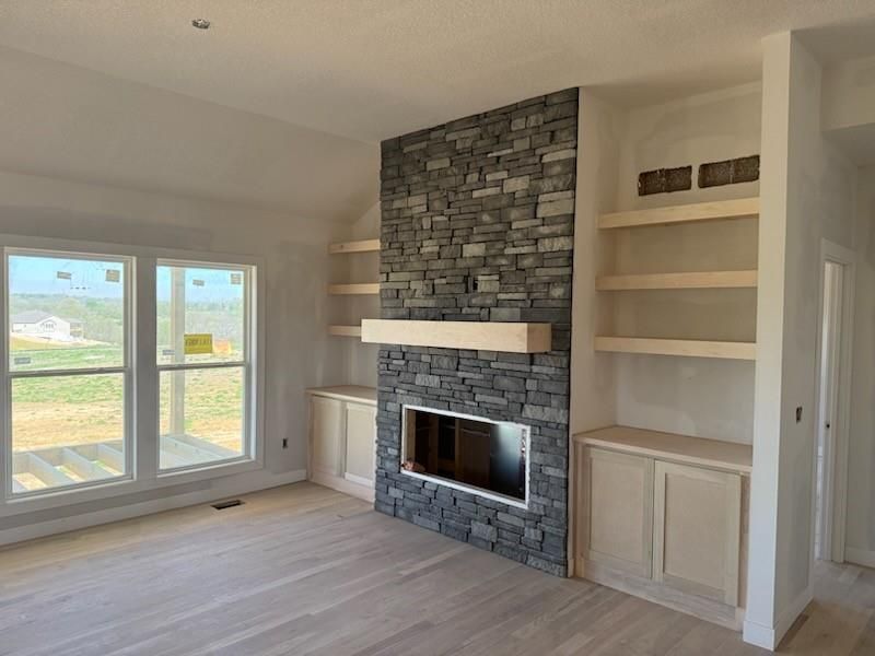 Check out this new 4 bedroom under construction in Greystone by ESV Construction. Youll appreciate all this reverse ranch offers, including an inviting front porch, open floor plan, stone fireplace, custom island kitchen including built-in oven, gas cooktop and microwave, real hardwood floors, main floor laundry near primary bedroom suite and finished walkout basement. There is plenty of storage space in the lower level and in the 3 car attached garage. Additional amenities include a covered deck and low maintenance exterior finishes. Access to the stocked ponds and common ground available to Greystone homeowners. Buyers advised to verify school district as SJSD boundary maps have changed.