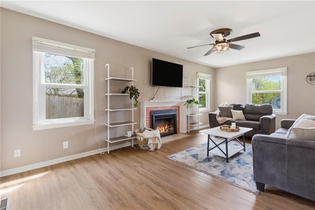 Tucked away on a quiet culdesac just minutes from downtown North Kansas City, this second owner home has been thoughtfully maintained and beautifully updated. From the moment you walk in, the home feels bright and inviting. The dining area is filled with natural light thanks to oversized windows that perfectly showcase the large backyard. The main level primary suite offers a comfortable retreat with its own ensuite bathroom and walk in closet. Additional bedrooms are generously sized, giving you flexibility for guests or a work from home space. Recent updates include luxury vinyl plank flooring and fresh interior paint throughout. Downstairs, the finished lower level adds even more living space with updated flooring and a custom built bar that is ready for game days, movie nights, or hosting friends. Out back, the fully fenced yard and large partially covered deck create an ideal setup for entertaining or simply unwinding. In the warmer months, the front garden comes to life with vibrant blooms, adding to the homes charm and curb appeal. In the winter, the fireplace offers the perfect cozy escape. This is one of those homes that just feels good the second you walk in, with the updates already done and the location hard to beat!
