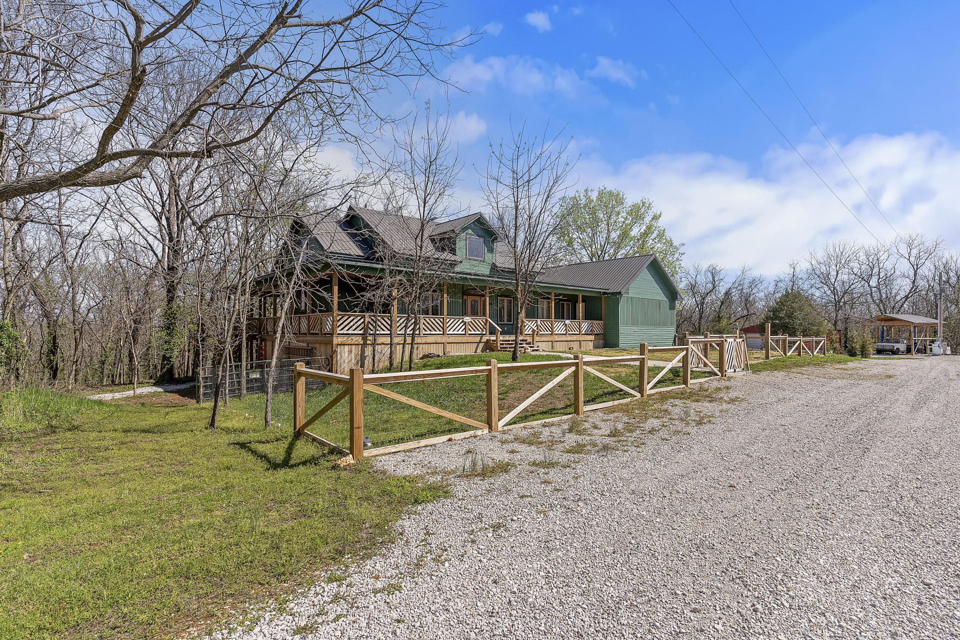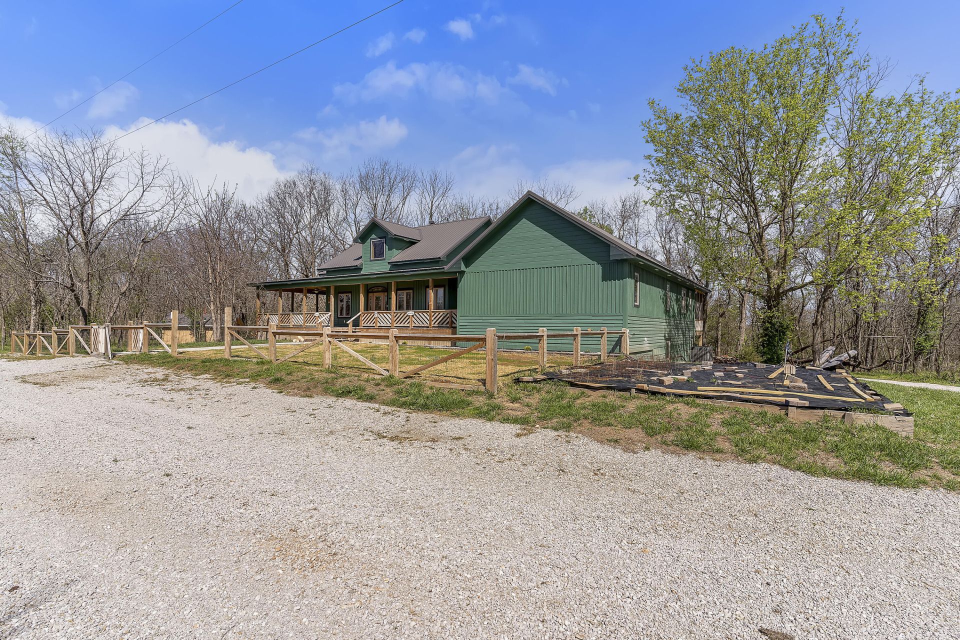 Welcome to your practically brand-new, custom-built 2024 cabin in the woods--a private retreat on 7.64± acres that backs directly to Corps of Engineers land with seasonal lake views and kayak access right from your backyard. Designed and built with meticulous craftsmanship, this all-wood 4 bedroom, 3 bath home radiates warmth, charm, and quality in every detail.Step inside to soaring vaulted and high ceilings, creating a spacious, lodge-like atmosphere that instantly feels like home. The wood flooring throughout the main level makes for easy care and enhances the natural warmth of the interior. As you enter, you'll be greeted by a massive formal dining room perfect for large gatherings--complete with a cozy window nook and a thoughtfully placed doggy door so your furry family members never miss the celebration.Two generously sized bedrooms, each accented with cedar, sit just off the main corridor. The home then opens into a stunning open-concept living area, ideal for entertaining. The chef's dream kitchen features granite countertops, two oversized sinks, a center island, an abundance of custom cabinetry, and a walk-in pantry so large it feels like your own private grocery store--a truly spectacular feature.From the main level, stairs lead to a charming half-story loft that overlooks the living area and kitchen, offering an incredible view of the architectural detail and open space below. This elevated nook provides the perfect spot for reading, relaxing, or simply enjoying the beauty of your custom cabin.The primary suite is an oasis of its own, offering an exceptionally large bedroom, huge walk-in closet, private tub, walk-in shower, and luxurious heated floors. Step directly onto your screened-in deck to enjoy morning coffee while watching wildlife and the peaceful wooded scenery. From there, the outdoor living continues onto a full-length back porch that wraps to the side--offering ceiling fans, can lighting, and ample outlets for year-round