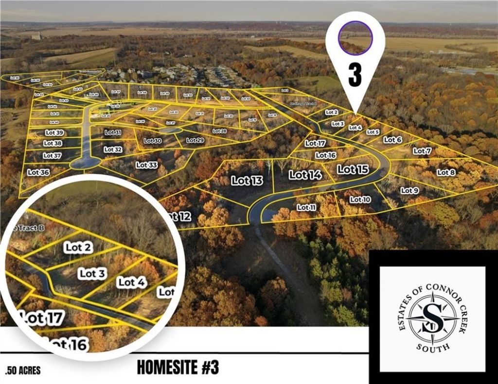 ½ ACRE BUILD READY HOME SITE = Where Luxury Breathes & Dreams Break Ground! A place where the horizon stretches wider, the air feels lighter & the promise of your future home begins long before the foundation is poured. On the edge of Kansas City, a new community set apart featuring a rare collection of homesites that have been carved into the rolling landscape just beyond the Legends in Kansas City, KS! A mix of sprawling .5+ acre to 1+ acre estate lots that invite you to design a residence worthy of your dreams. Each homesite offers sweeping views, surrounded by mature trees, open skies, and the quiet rhythm of nature?all set along winding paved streets with curbs, gutters + city sewer! Where countryside serenity meets effortless access in the award-winning Piper School District. A premier location just 20 minutes from KCI International Airport, the historic charm of Weston, the riverfront elegance of Parkville, the vibrant culture of Lawrence & the stability of Fort Leavenworth. Youre also around the corner from The Legends premier shopping, elite dining, endless entertainment and sporting events and venues! Championship golf courses, natural sanctuary of WYCO Lake w/ chart-topping musical performances an Amphitheater. Finally, convenience is within reach?yet life feels wonderfully private. Existing Amenities help set the tone for elevated living w/o the wait. Those seeking guidance. Our ONSITE preferred custom builder stands READY to collaborate OR help you find the right builder & turn your dreams into reality! This is not simply a place to build a home, it is the beginning of your story on Homesite #3. Take a scenic drive & preview this EXCLUSIVE collection of just 56 beautiful homesites, each tucked into the reserved hills of this BRAND-NEW community, where your estate begins with a dream & rises into a life lived beautifully in the heart of Kansas City!