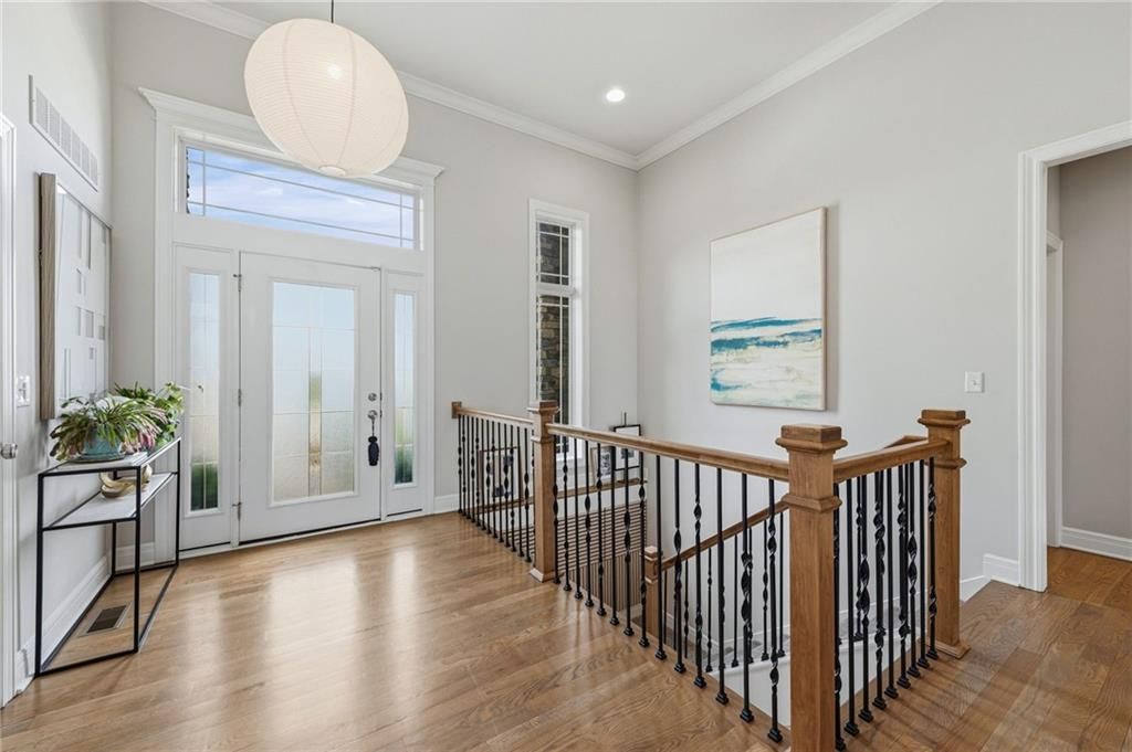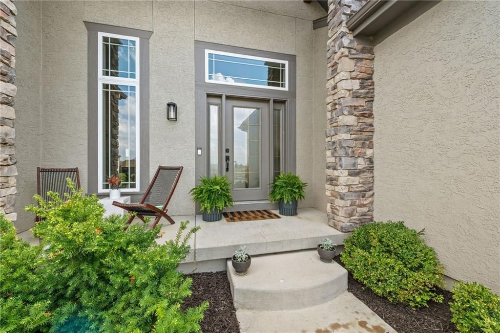 DESIGNERS DREAM !!! The Morgan by New Mark Homes situated in Cider Mill, south of The National in Parkville Missouri ! 5 bedrooms / 3 baths / 3 car garage ! ***NEW ROOF, GUTTERS AND DOWNSPOUTS*** Roof completed by 4/17!!! This a TRUE SHOW HOME w/ countless upgrades to lighting & decor by these owners! Designer Wallpaper abounds adding accent walls & tasteful design! Custom window coverings in every room. Owners have added ADT Security System, Screened in Deck, Front Landscape & Hardscape, Fenced Backyard, Patio Lighting, Deck Fireplace (electric), there is so much more! The Open floor plan with Great Room Fireplace & beamed ceilings open up to the white cabinets & oversized island w/ quartz countertops & designer backsplash. The drop space from the garage is perfectly situated. Primary master suite has double vanity, tub & walk in shower w/ glass door. Closet is spacious and opens up into the laundry room. 2nd bedroom on main level is right off the kitchen w/ a 3/4 bath. Lower level has wet bar w/ lots of entertaining space for ping pong & watching movies! Closet and storage space is amazing .... the walk out walk up feature allows natural light! There is a separate sump pump for the LL patio. This is an amazing home and definite pride of ownership ! This area has a nice community pool, close proximity to Downtown Parkville, Creekside, Graden Elementary, Lakeview Middle School, 435, KCI, I-29 and so much more!