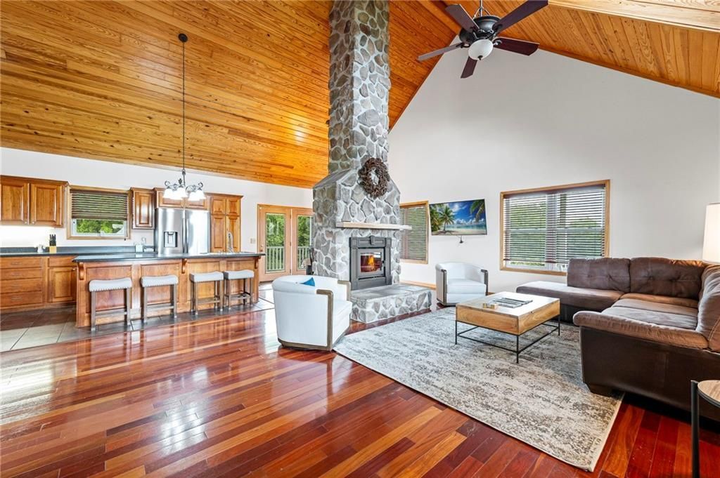 Escape to your own slice of paradise with this stunning 4-bedroom, 3-bath home nestled on 40 picturesque acres. Designed for comfort and connection with nature, this one-of-a-kind property features a spacious wrap-around deck perfect for morning coffee, sunset views, and everything in between. Step inside to find a warm and inviting living space with a breathtaking floor-to-ceiling fireplace, creating a cozy centerpiece for gatherings year-round. The open layout and expansive windows bring in natural light and offer beautiful views of your private haven. Half of the land boasts mature woods teeming with wildlife, offering peace, privacy, and exceptional hunting or hiking opportunities. The other half is productive row crop ground, giving you flexibility for farming, leasing, or expanding your homestead vision. Enjoy fresh fruit from your established fruit trees and grapevines, and discover the joy of country living with deer, turkey, and wildlife right outside your door. Whether youre looking for a family home, a weekend retreat, or a private estate, this property delivers serenity, space, and endless possibilities. Dont miss your chance to own this perfect getaway?where comfort meets nature, and every day feels like a vacation.