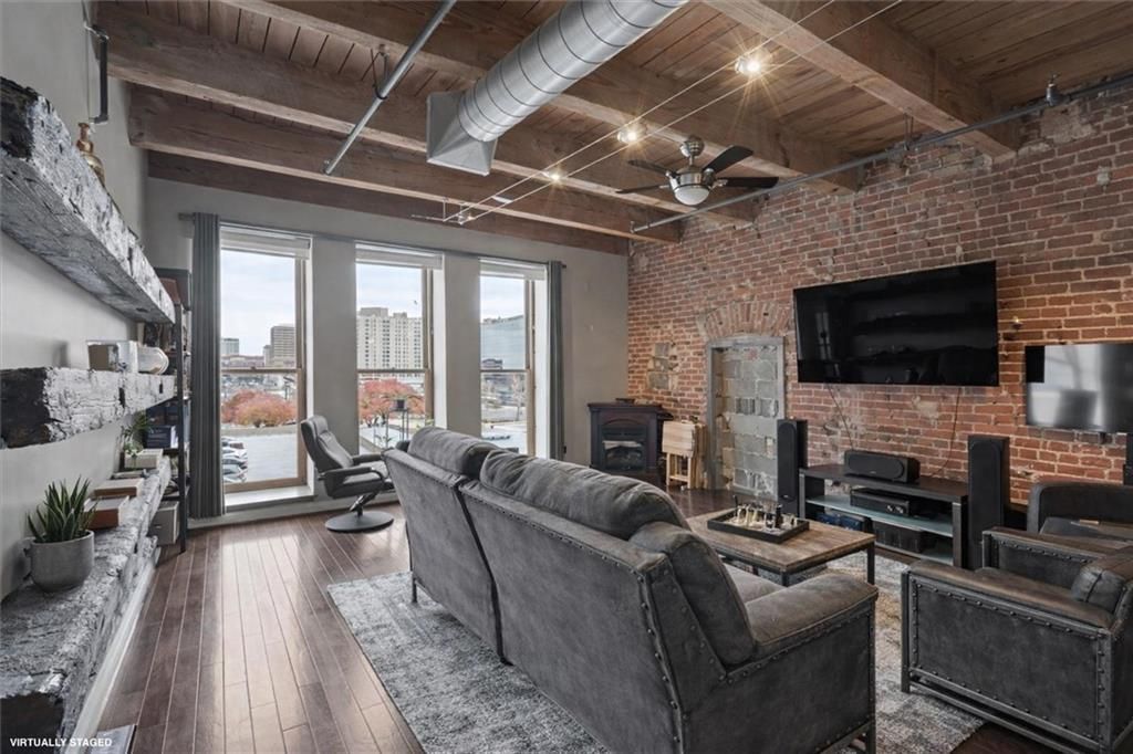 Modern amenities, 3rd-floor views, plus the entire downtown scene as your playground! This adorable condo packs big style, authentic urban accents, and a whole lot of charisma into a historic 1800s building conveniently located between the River Market and the P&L District.We are talking light, height, and exposed elements: brick, timber beams, piping, and a polished tongue-and-groove ceiling, all of which play perfectly against the sharp upgrades and the Brazilian Walnut floors that flow throughout.While the vibe leans industrial, it still feels warm and sophisticated. The elevated living area is comfortable with city views and a cozy gas fireplace. The bedroom is inviting, with ample closet space, and the bathroom is sleek and relaxing, featuring a jacuzzi tub and a Rain Shower Head.The kitchen impresses with stainless steel appliances, granite countertops, a stylish backsplash, custom cabinetry, and a functional breakfast bar island with a cooktop. A nearby alcove creates the perfect spot for a home office.Furthermore, you have the benefit of an in-unit washer and dryer, a gated surface parking spot, and a storage locker.Residents can take advantage of an array of amenities, including a sauna, hot tub, pool, gym, tanning bed, media room, kitchen, club room, theater, bike rack, and meeting center. The grand staircase and preserved domed ceiling pay homage to the buildings historic roots, adding a touch of timeless elegance.Great layout, fantastic perks, and day or night, you can eat, drink, shop, or play thanks to the nearby streetcar and all the surrounding venues. Dont miss your chance to own a piece of history and live that downtown lifestyle youve dreamt about.