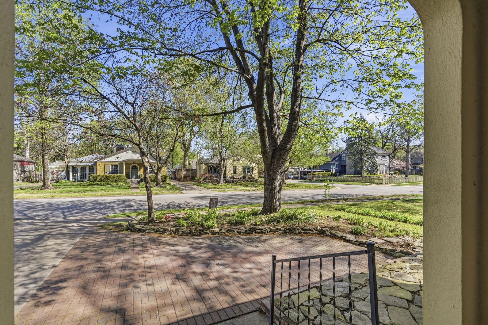 Welcome to sought after University Heights where timeless charm meets thoughtful updates in this inviting two story home. A covered front porch sets the tone as you step inside to a warm and welcoming living room featuring hardwood floors, a cozy fireplace, and a connected office or den perfect for work or relaxation. The formal dining room offers a built-in cabinet and flows seamlessly into the kitchen complete with a gas range and abundant cabinet space. A unique main level conversion provides a fourth bedroom with a bathroom, featuring tile floors and a zero threshold shower for easy accessibility. Upstairs you will find three spacious bedrooms including a primary bedroom with dual closets and a full bathroom. The basement offers generous storage space to keep everything organized. Out back, the standout feature is the beautifully designed screened in deck with sun shades, creating a peaceful retreat to enjoy the outdoors in comfort. The backyard continues to impress with raised garden beds, lush landscaping, and a metal storage shed. Additional highlights include Andersen windows, an oversized AC unit just three years old, and a two year old water heater. All of this in a highly desirable neighborhood close to parks, Missouri State University, and everything Springfield has to offer.