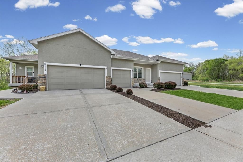 Rarely available 2-bedroom, 2.5-bath townhome in Villas of Stonebridge! This spacious, move-in-ready home offers the perfect blend of privacy, style, and true low-maintenance living.Inside, youll find granite countertops, stainless steel appliances, and large, bright windows that fill the home with natural light. The property has been well maintained and features brand new carpet and fresh paint throughout, ready for you to move right in!Step outside to your patio backing to greenspace and a wooded area, creating a peaceful setting ideal for morning coffee or evening relaxation.The HOA covers lawn care, landscaping, snow removal, exterior maintenance, and more, allowing for easy, worry-free living. Conveniently located with quick highway access and just minutes from The Legends, Kansas Speedway, and the future home of the Chiefs Stadium!Schedule your private showing today! (Investment opportunity available with the two neighboring units also for sale. Please reach out for additional details on a package purchase if interested)