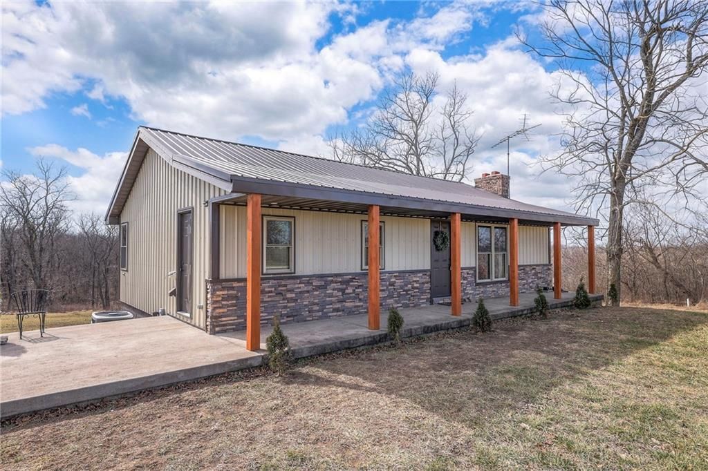 Imagine that perfect country home. Do you see yourself sitting high above your own pond, watching ducks lazily circle before landing? Picture gazing at the tree line as deer emerge in the early evening, or neighbors passing by in a horse and buggy rather than a pickup truck. Have you dreamt of a manicured yard, a new fruit orchard, or a 2,800 sq. ft. outbuilding with utilities? Is your ideal home perched on a high spot with views for miles in every direction? If so, this is your dream come true! This beautiful 15.7-acre property only minutes from Whiteman AFB features rolling terrain, a stunning stocked pond, and a stream winding through the land. Enjoy open spaces, breathtaking views, lots of wildlife and timber with trails to explore. The low-maintenance, metal-sided 1,686 sq. ft. ranch home offers three bedrooms, two and a half baths, and a finished walk-out basement. Recently remodeled and repainted, the kitchen boasts butcher block counters, an island, upgraded fixtures, and a deep country sink. The open floor plan in the main living area creates a welcoming space, while the finished basement includes a second kitchen?ideal for a mother-in-law suite. Step out onto concrete patios or a deck off the main living area, overlooking the pond?providing everything you need for the contented country life youve always imagined. There is plenty of room in the 3024 sf outbuilding with electricty and a water hydrant for both work and toys. A newly planted Orchard pollinated by your own bee hives completes the picture. Here, you can watch both sunrise and sunset from the same spot. If you value seclusion, privacy, beauty, and serenity, this property checks every box. Dont miss the chance to make it yours! NEW PRICE, PLUS $10K SELLER CREDIT TO USE FOR LOWER PRICE, REMODELING, OR RATE BUY DOWN!!!
