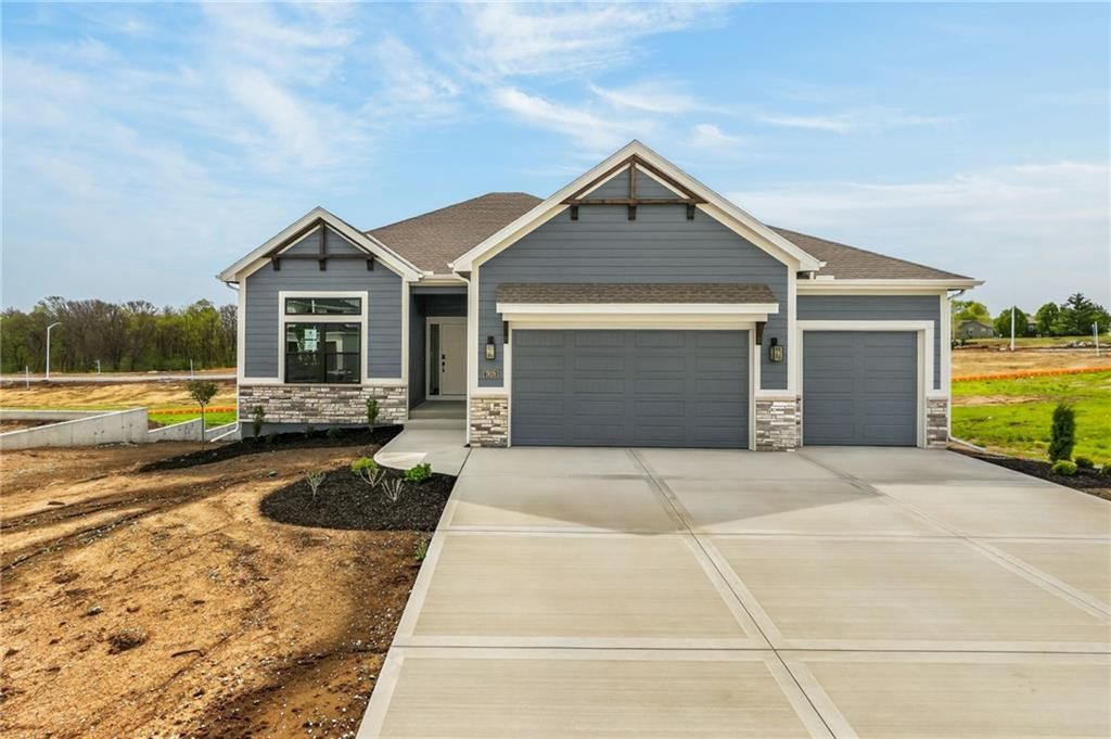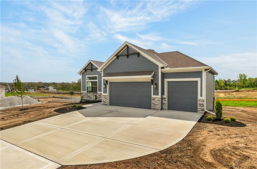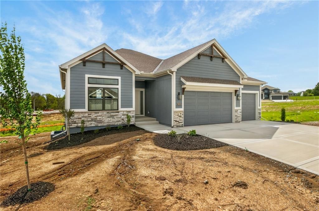 The McKinley by Hearthside Homes is a stunning Reverse 1.5 Story offering 4 bedrooms, 3 baths, and over 2,800 sq ft of well-appointed living space that blends comfort, craftsmanship, and modern style. The open-concept main level features hardwood floors, abundant natural light, and a great room anchored by sleek linear fireplace. The kitchen impresses with quartz countertops, a contrasting island and hood, and a black Silgranit sink?balancing beauty and function. Dining area opens to covered deck overlooking the backyard. Home ready-MID-APRIL. The primary suite delivers a true retreat with a freestanding tub, tiled shower, dual vanities, and a spacious walk-in closet that connects directly to the laundry room. A secondary bedroom, full bath, and laundry complete the main level.The finished walkout lower level adds a large rec room with wet bar, two bedrooms with walk-in closets, a full bath, and generous storage space. An oversized patio enhances outdoor living and is perfect for entertaining or quiet relaxation. Mid April completion date.This home is built with double-wall construction, I-joist floor systems, and engineered roof trusses for strength and durability. Every Hearthside home also includes a video-recorded sewer scope, third-party duct cleaning, and a third-party inspection process to help ensure quality and peace of mind. Hearthside Homes has been building in the Kansas City area since 1987 and is known for quality construction and a streamlined building experience.***Hearthside includes an exceptional warranty package: 1 year of whole-house coverage, 2 years of mechanical systems protection, and a 10-year major structural warranty. Plus, a third-party inspection with sewer line review and HVAC duct cleaning.***Outstanding community amenities include; swimming pool, pickle ball court, 3 acre fishable pond, outdoor pavilion area w/2 fireplaces, rentable clubhouse with kitchen & party space & internet!