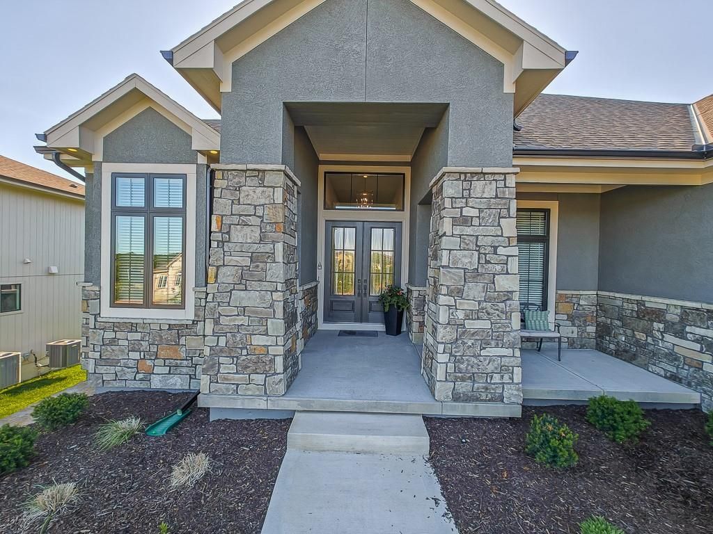 MODEL HOME - NOT FOR SALE. Welcome to the Courtland Reverse, crafted by the esteemed Don Julian Builders. Nestled in Bristol Highlands Estates in Shawnee on lot 11, this stunning reverse 1.5 story home boasts 4 bedrooms + office, 4 full bathrooms, and 2 half bathrooms across 4,270 sq ft of meticulously designed living space. This home offers unparalleled entertaining space and tranquility. The main level boasts a grand primary suite featuring a vaulted bedroom, a primary bath complete with soaking tub, double vanity, and an expansive walk-in closet seamlessly connected to a convenient laundry room. Entertain with ease in the designer kitchen, equipped with a 5-burner gas cooktop, large island, walk-in pantry, and open layout. The great room features vaulted ceilings, gas fireplace, and access to the covered deck, where you can unwind while enjoying picturesque views from the rolling hills of Shawnee. The main level also offers a versatile study/flex room, another main level bedroom, an inviting outdoor courtyard, and a built-in pub, perfect for hosting gatherings or relaxing evenings at home. Descend to the lower level to discover two additional bedrooms with their own bathrooms and a spacious recreation room with access to the covered patio. Entertain effortlessly at the wet bar with a large island, accompanied by a convenient half bath for guests. Beyond the luxurious amenities of this home, Bristol Highlands Estates offers a lifestyle of convenience and recreation. Enjoy proximity to premier golf courses, Lenexa City Center, parks, walking and biking trails, as well as an array of shopping and dining options. Future plans for the community include a clubhouse, pool, sport courts, and playground, promising endless opportunities for leisure and fun. Experience the epitome of luxury living in the heart of Shawnee.